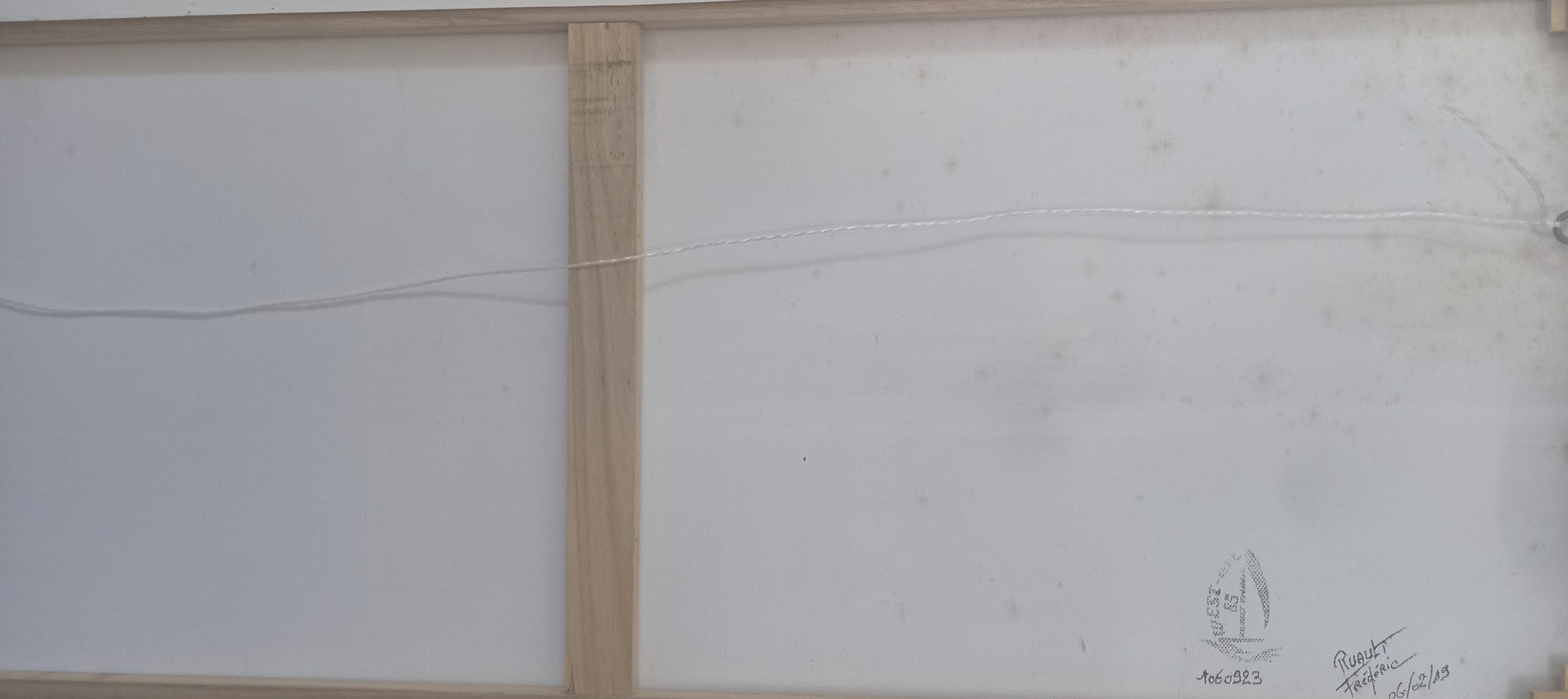 Quelques traces d’humidité sont visibles au dos de la toile, sans aucune incidence sur l’aspect ou la stabilité de la peinture à l’avant.